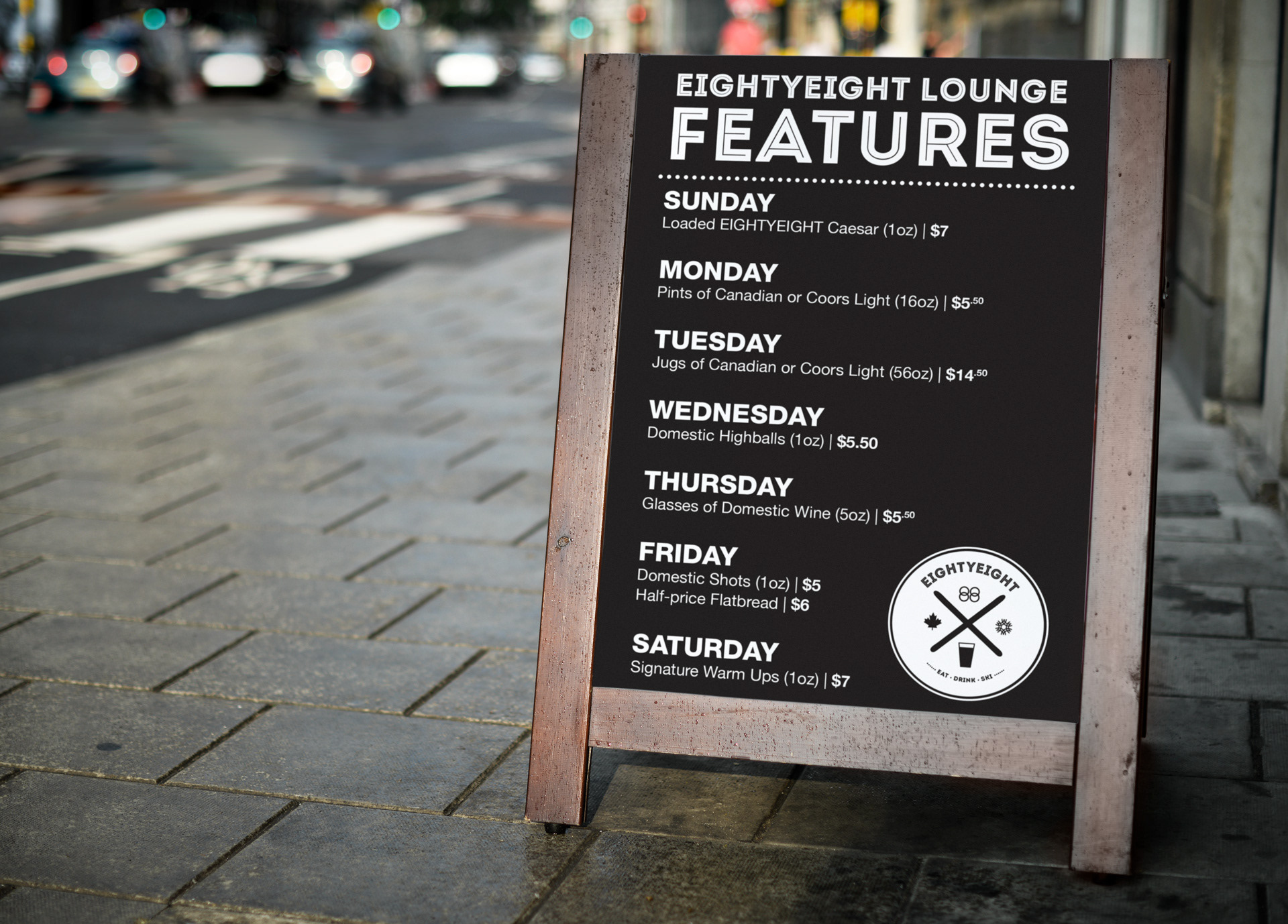Create a fresh logo and interior graphics for the EIGHTYEIGHT Lounge.